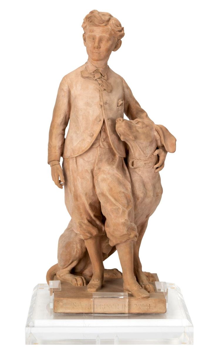 This was a well-received portrait, reproduced in lots of different materials and sizes, in bronze, plaster, terracotta and biscuit. Even after the fall of the Empire and the tragic death of the Prince in South Africa, this portrait continued to be sold under the title “Boy With Dog.”